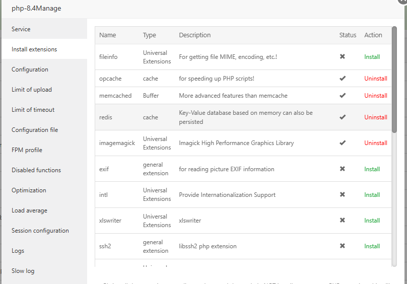 Installing shared extensions: /www/server/php/84/lib/php/extensions/no-debug-non-zts-20240924/