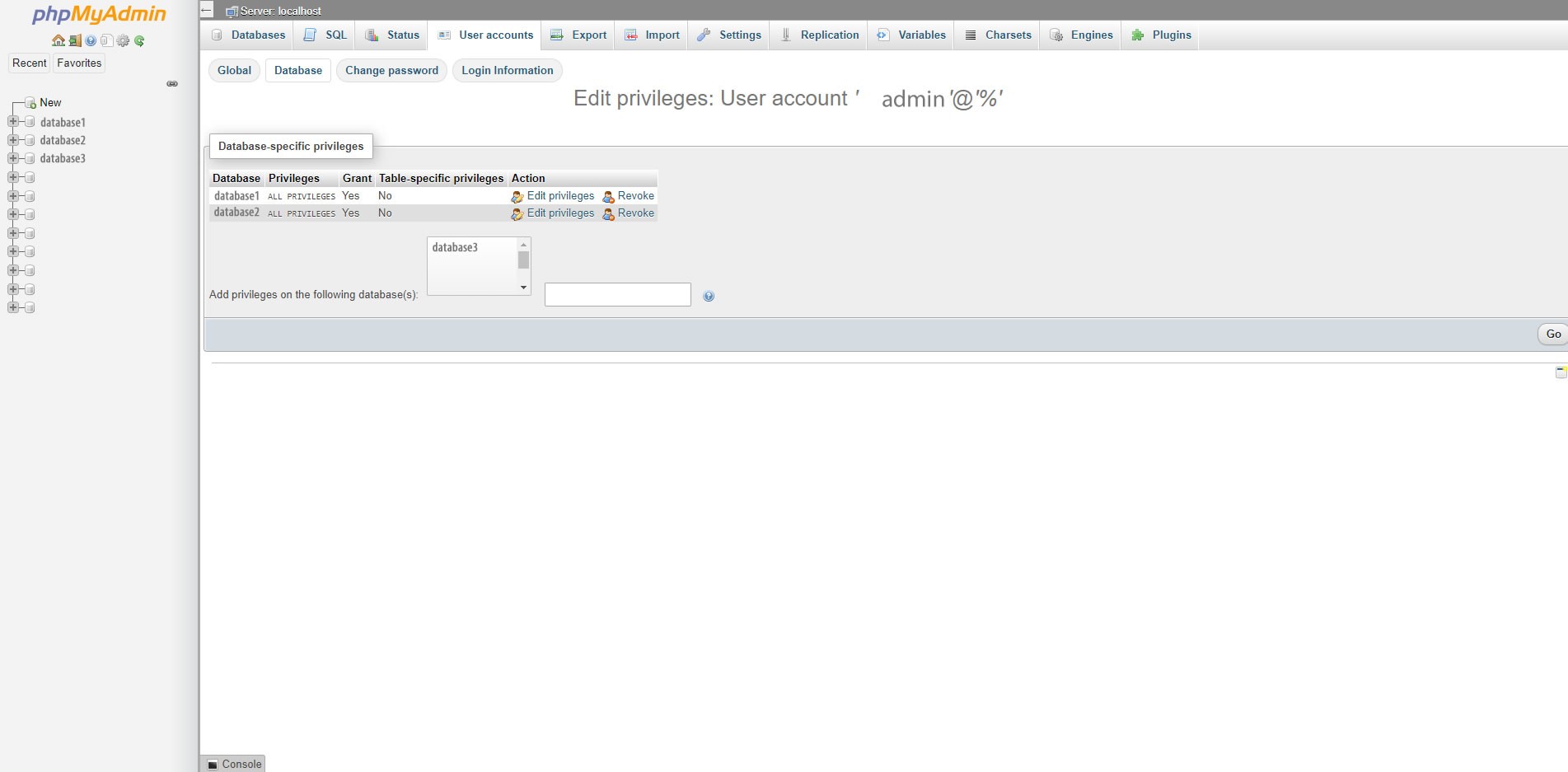What's the required permission for creating & deleting database from laravel code and how to assign permission to that user?