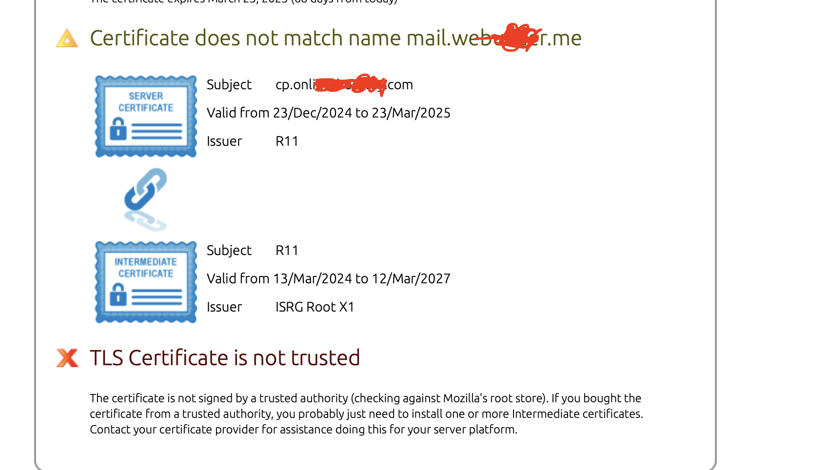 shows this error under certificate :