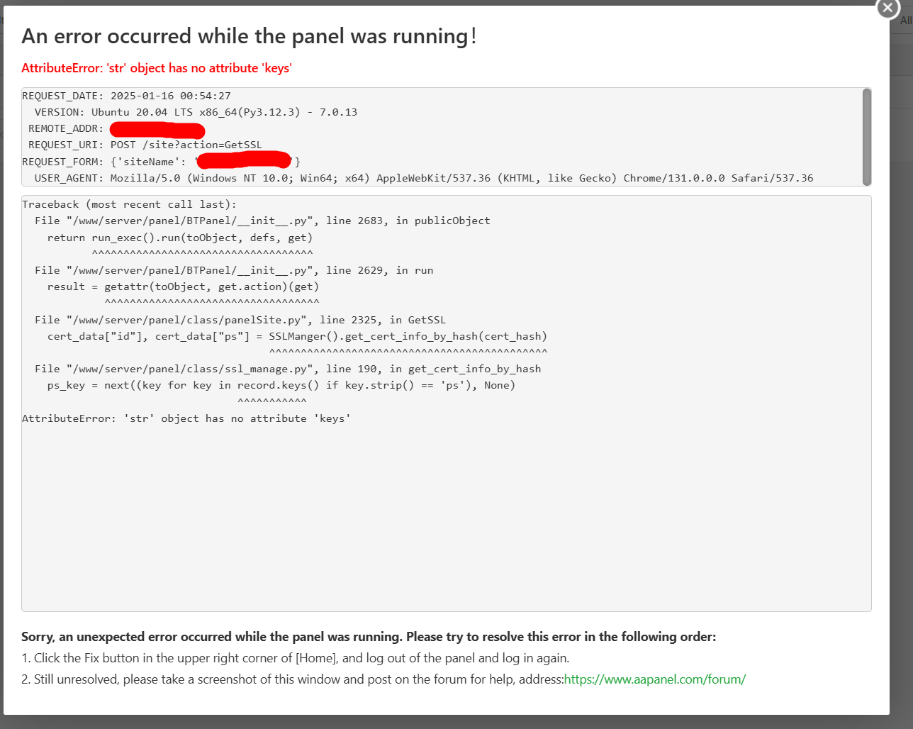 aaPanel_Kern Hello, thank you for your feedback, we have solved this issue You can click "FIX" on the homepage to repair it. Is it possible to solve it? Or use the bt 16 command to fix it aaP_seohitclubvip