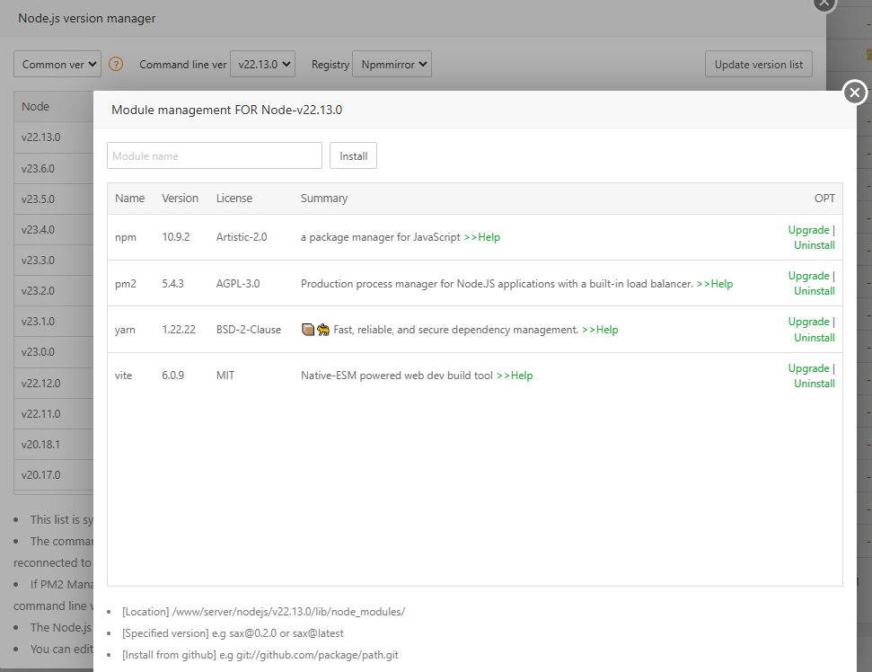 [aapanel@aapanel ecommerce]$ /www/server/nodejs/v22.13.0/bin/npm list -g vite
