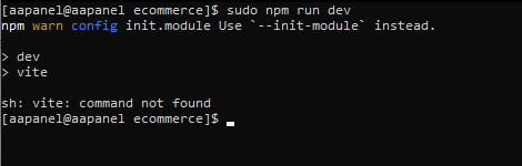 [aapanel@aapanel ecommerce]$ npm list -g vite