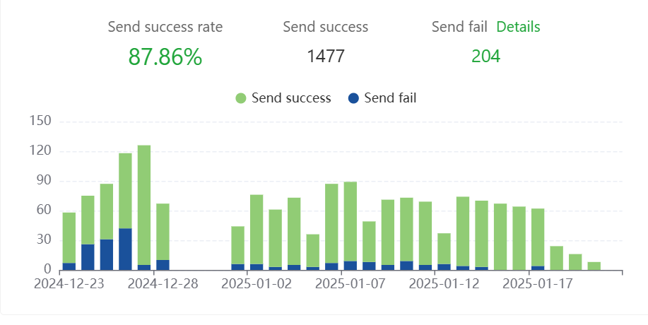 Here is a screenshot from the panel, which shows that from December 23 to January 21, about 1500 emails were sent, but not 26000???