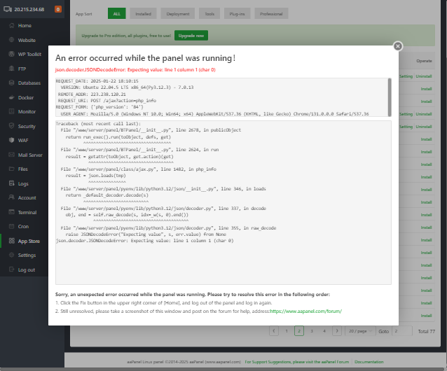 it got installed successfully but its not working...ubuntu22--tried in multiple server (racknerd, oracle, microsoft) same error.
