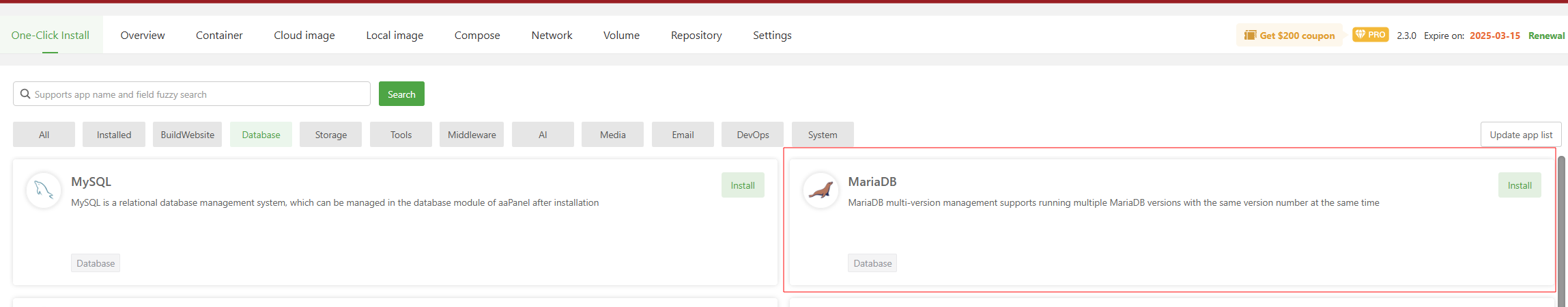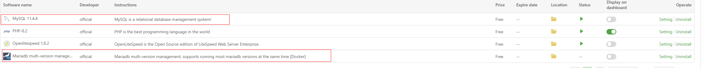 the onlyone is mysql mariadb when you try to create a wordpress site via wptoolkit correct?
