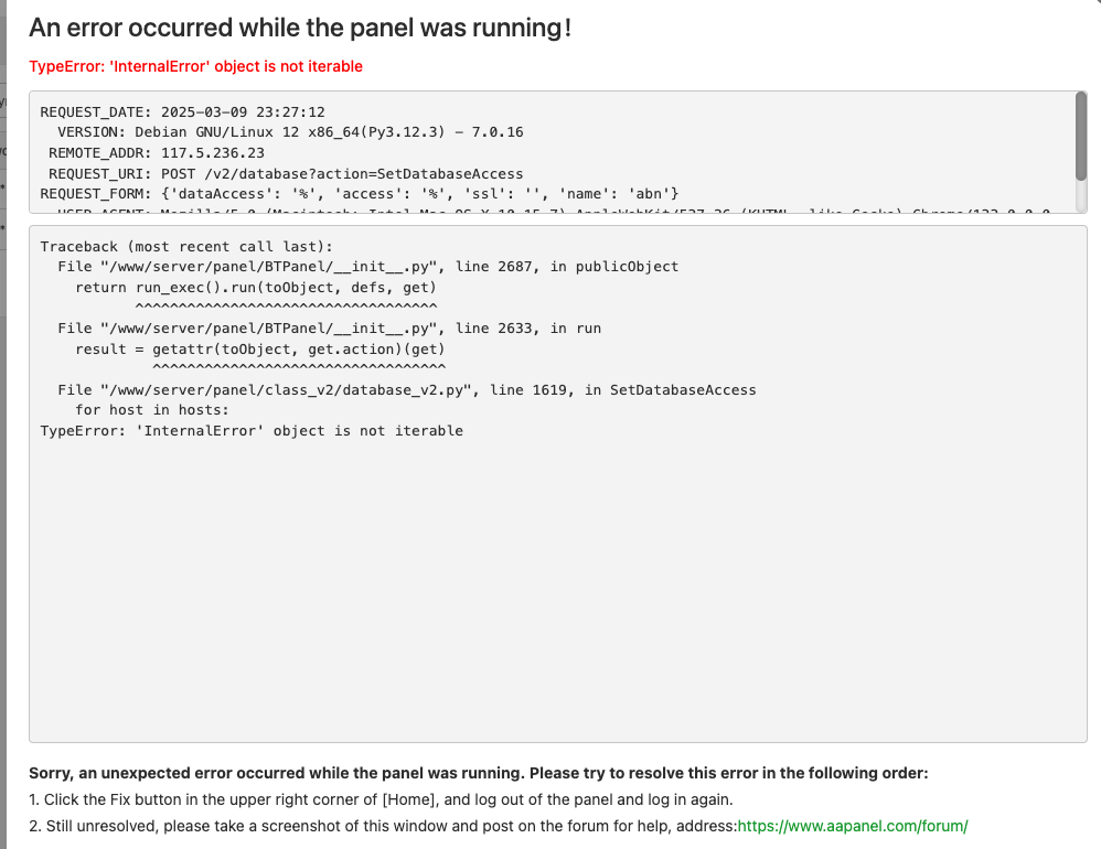 Hi, can you give us your aapanel information? The server makes a snapshot backup first, if possible, please send it to kern@aapanel.com.