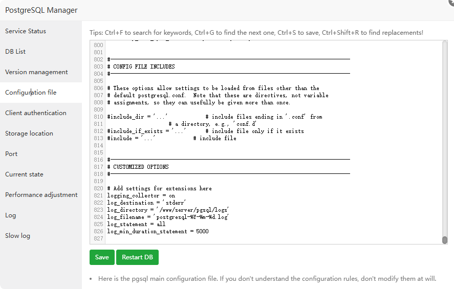 aaP_paulm does aaPanel have pages to configure postgresql.conf? or is it ok to edit manually and restart the database?