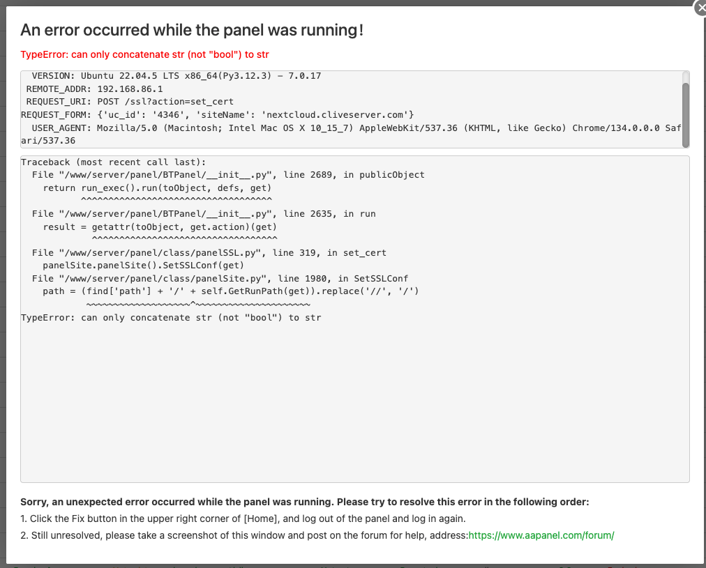 aaP_joshuacowdrey Has anyone come across this error before, I get this error (or similar) when I try and renew SSL using Let's Encrypt, or when I purchase a business cert and then try to deploy.