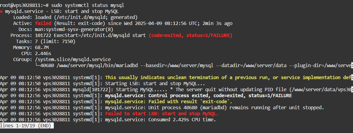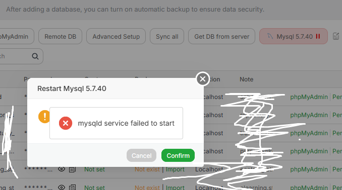 aaPanel_Kern Hello, I suggest you check the mysql log, what is the reason You can also use this command to check: curl -k https://www.aapanel.com/script/mysql_check.sh | bash her1saputra