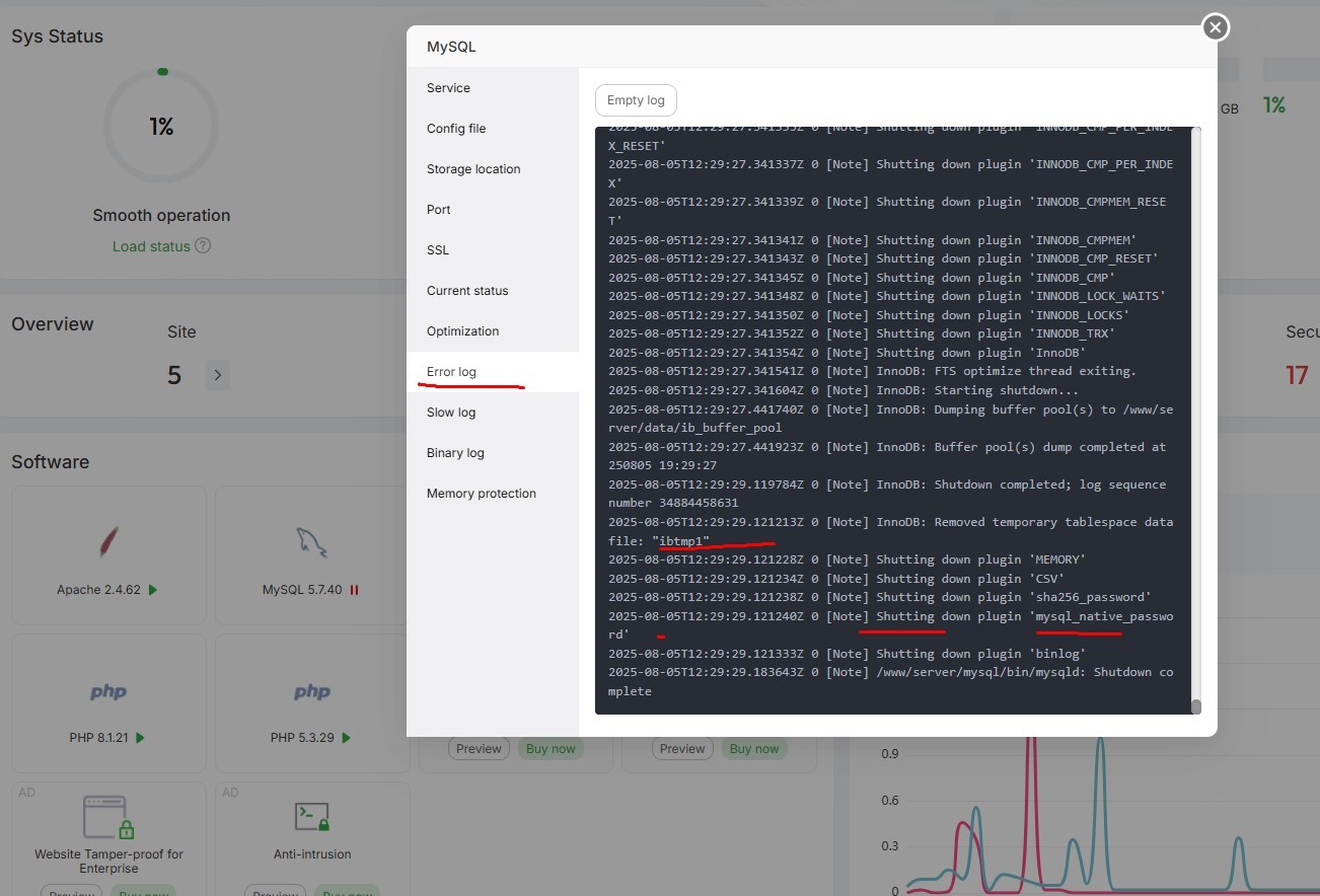 aaPanel_Kern Hello, You can use this command to check: curl -k https://www.aapanel.com/script/mysql_check.sh | bash her1saputra