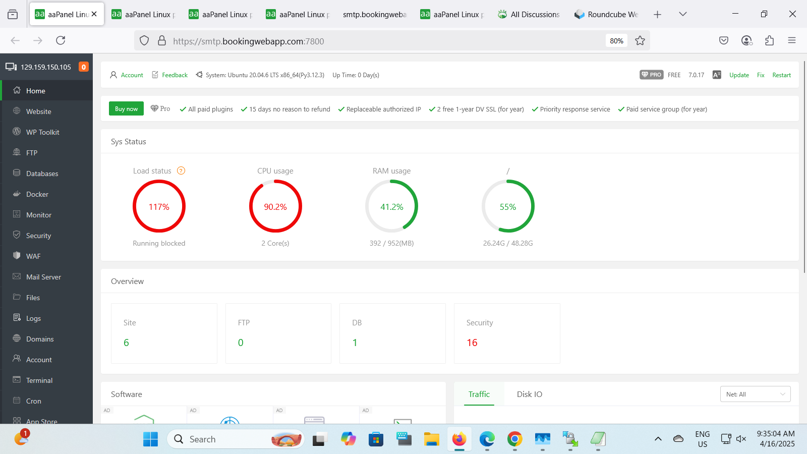 Hello. I noticed that my server load and CPU keeps on going up from time to time and it will freeze my system that will make aaPanel and all of my website impossible to connect.