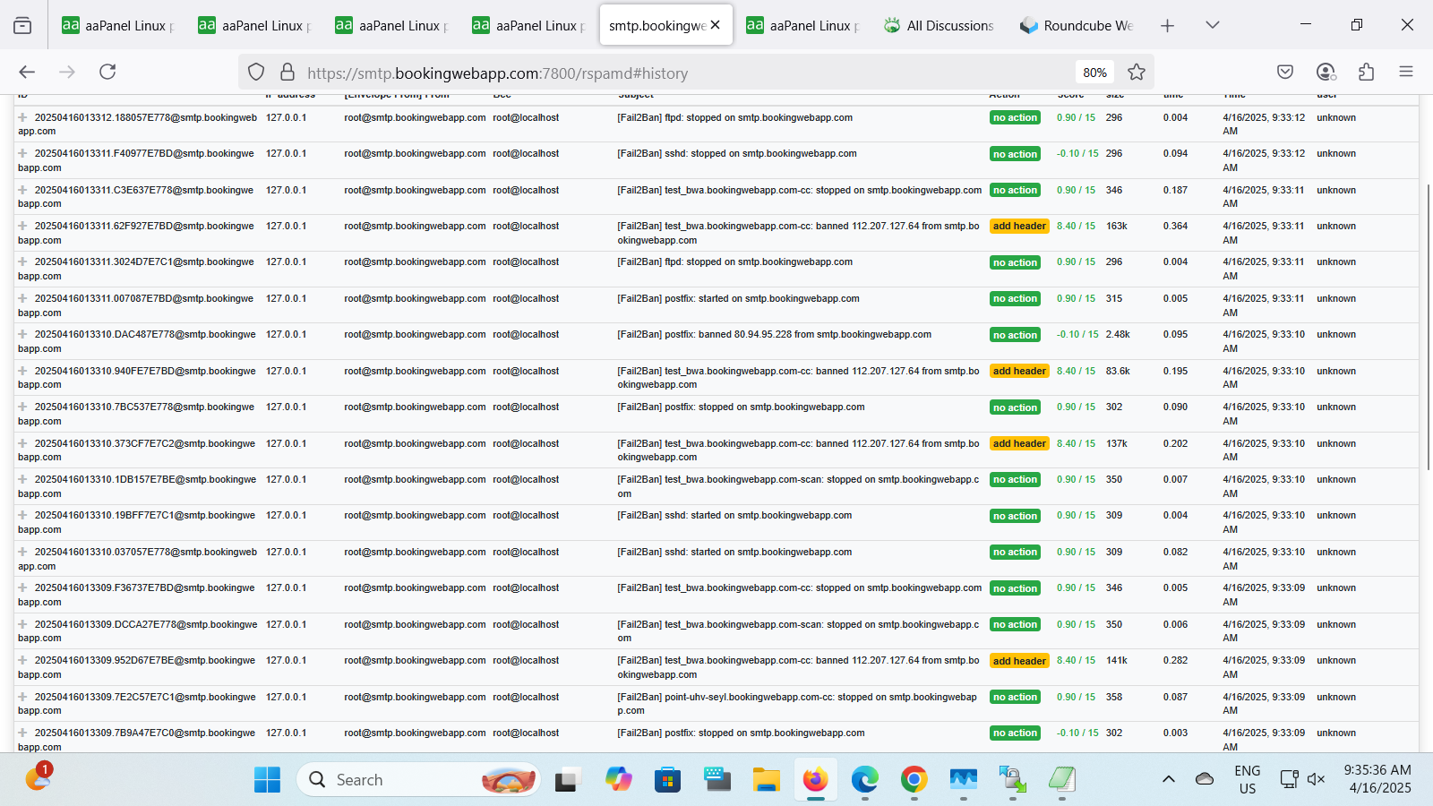When I checked Rspamd GUI website which you can see in aaPanel Mail Server Spam menu, Fail2Ban always send notification email message directly to my email server.