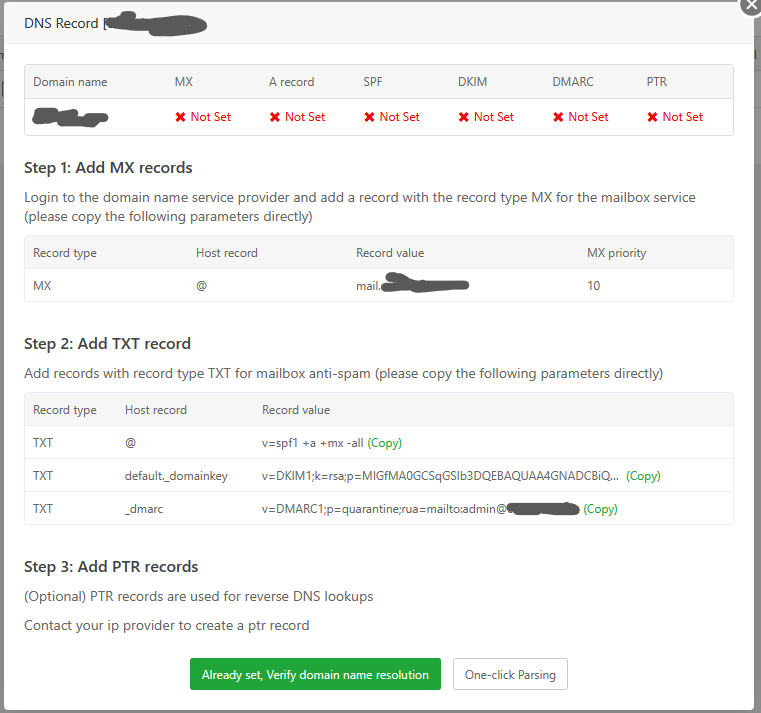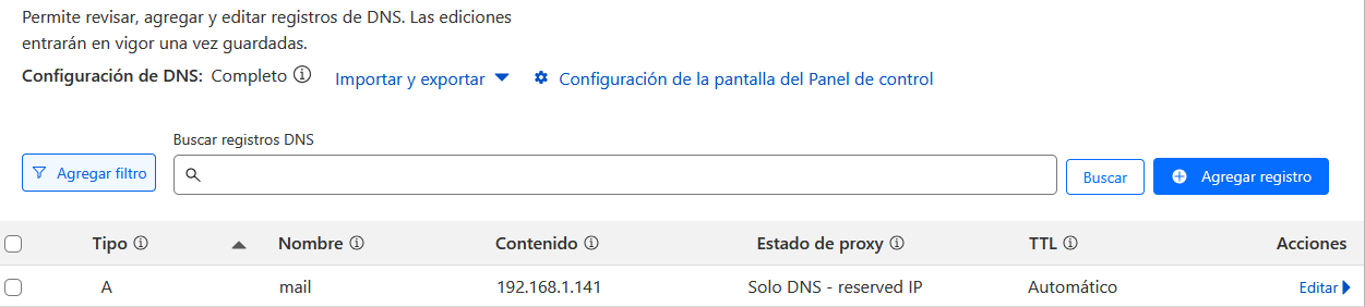 To set up your mail server correctly, your domain’s A record must point to a public IP address.