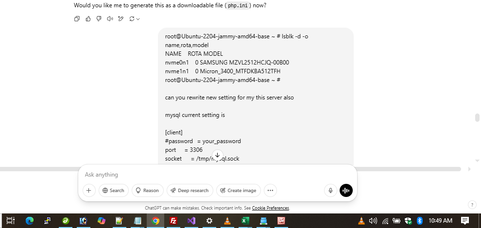 first ChatGPT edit mysql ini file after it fix php 8.x ini file
