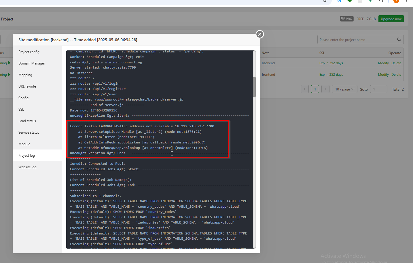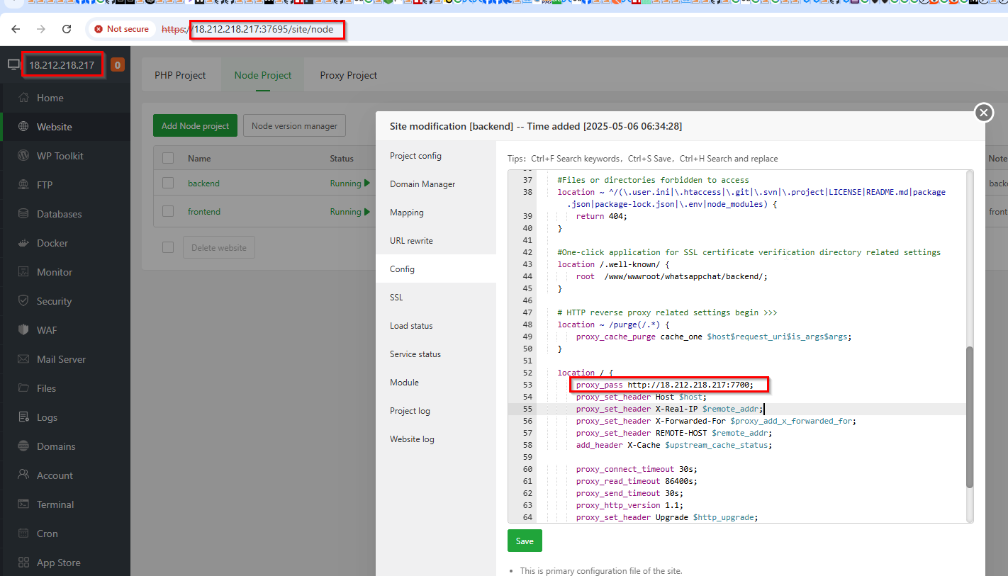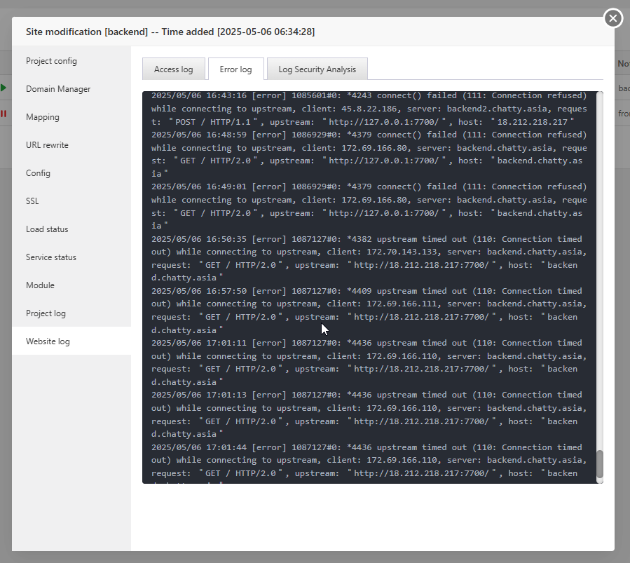 yehximin I cannot turn on / off the firewall, I get this error: I am using aapanel 7.0.18 This is the nodejs project error log: it shows 504 timeout