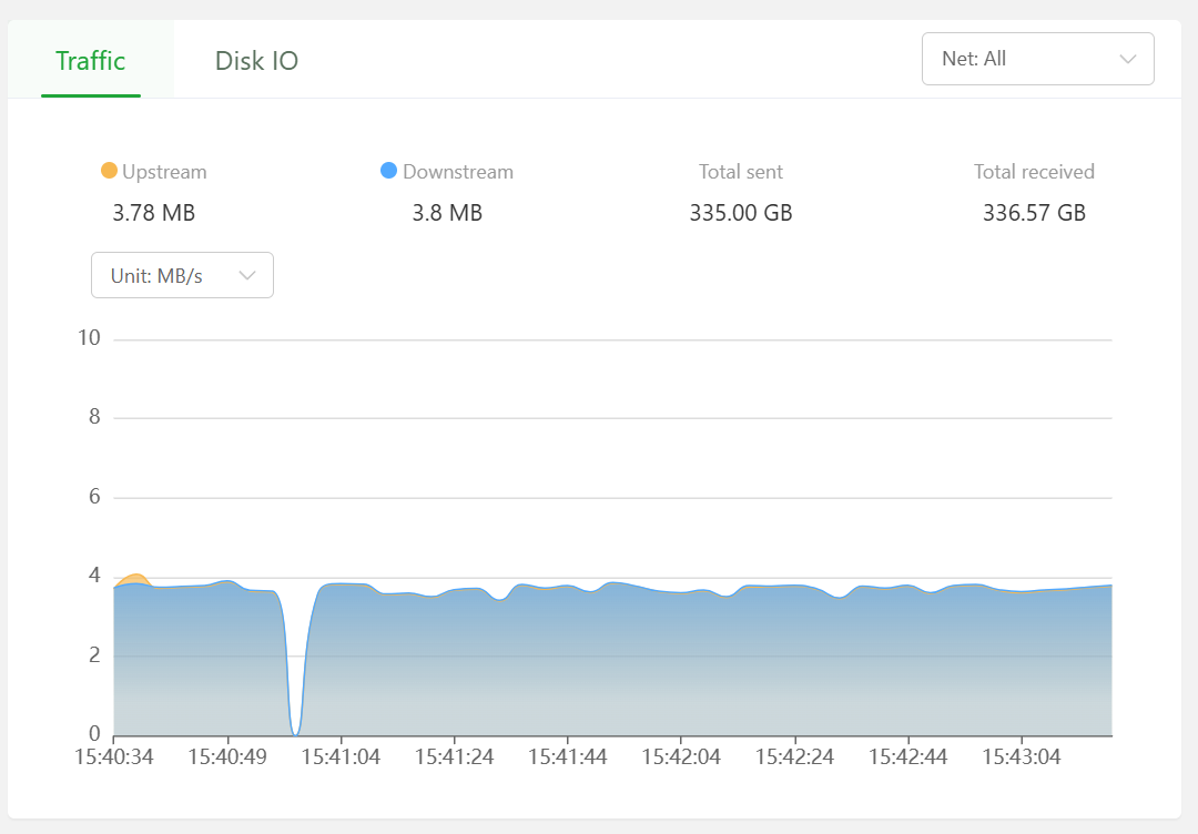 Specifically, aaPanel shows that my server is transferring around 3-4 MB/s both upstream and downstream, which seems unusually high and inconsistent. However, when I check the network usage directly through the hosting provider’s VM manager, it accurately shows around 80 KB/s, which aligns with my actual expected traffic.