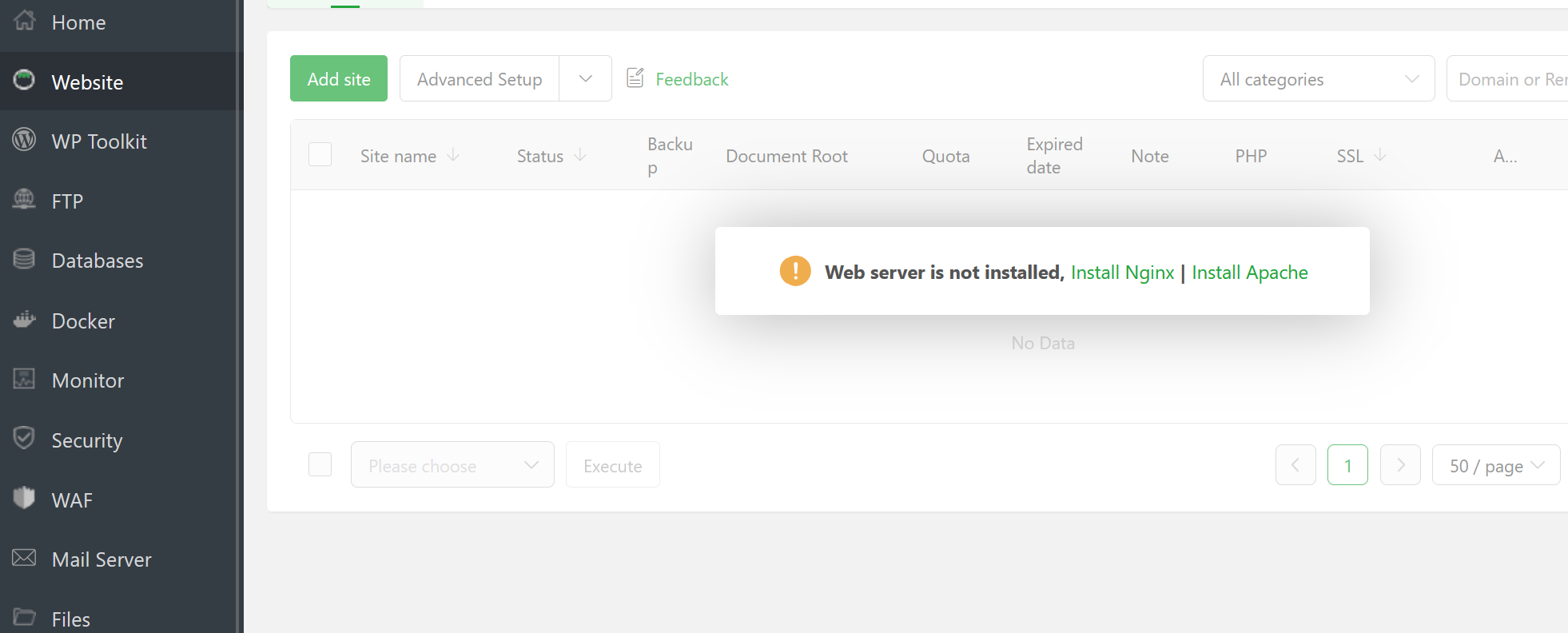 I’ve been hosting several websites using aaPanel for more than a year without any issues. However, today when I opened the Website menu in aaPanel, I saw this message: