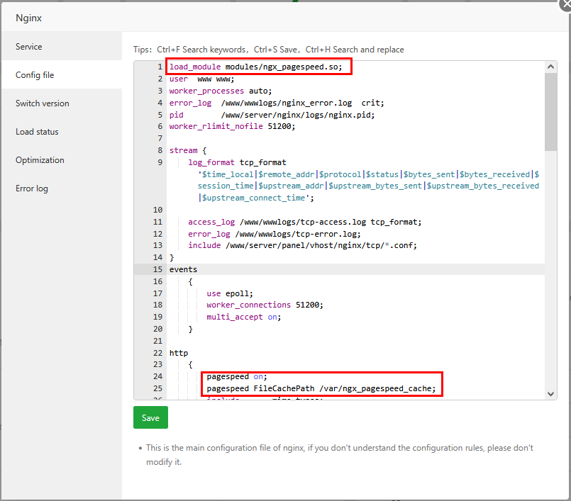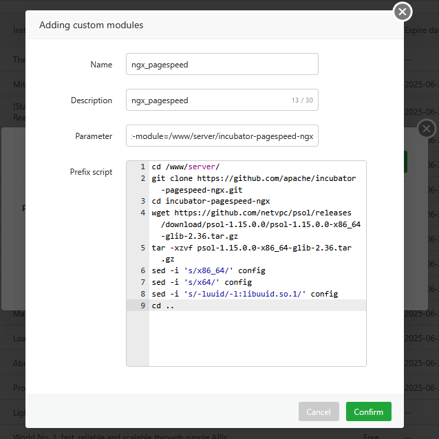 Module Parameter: --add-dynamic-module=/www/server/incubator-pagespeed-ngx