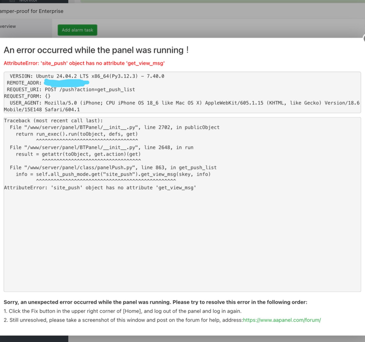AttributeError: 'site_push' object has no attribute 'get_view_msg' — when fetching push list