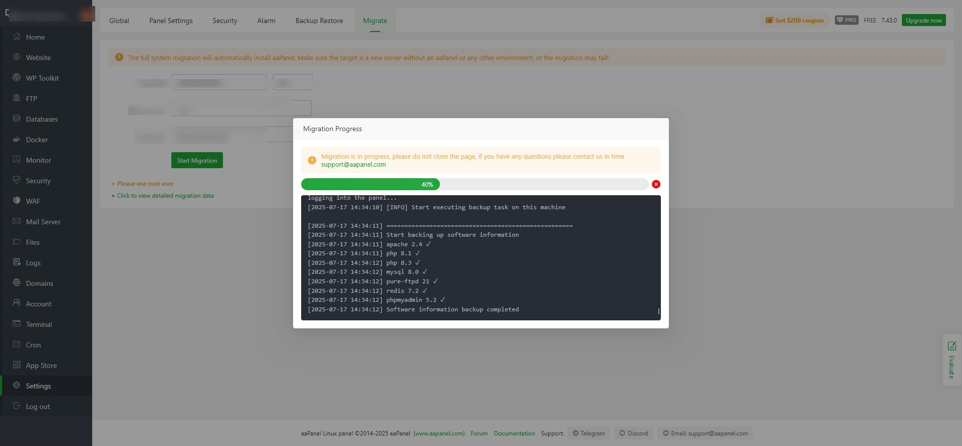 aaP_tyrehub Migrate option not display in old server with latest aapanel but when we install fresh server its display Backup Restore Migrate. how can i enable it in old server too ?? i have same configation both server and need to migrate server.