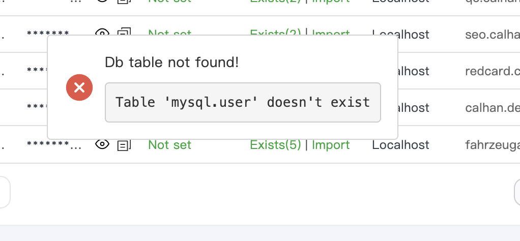 This problem is critical, because I cannot create, edit or manage database users in aaPanel anymore.