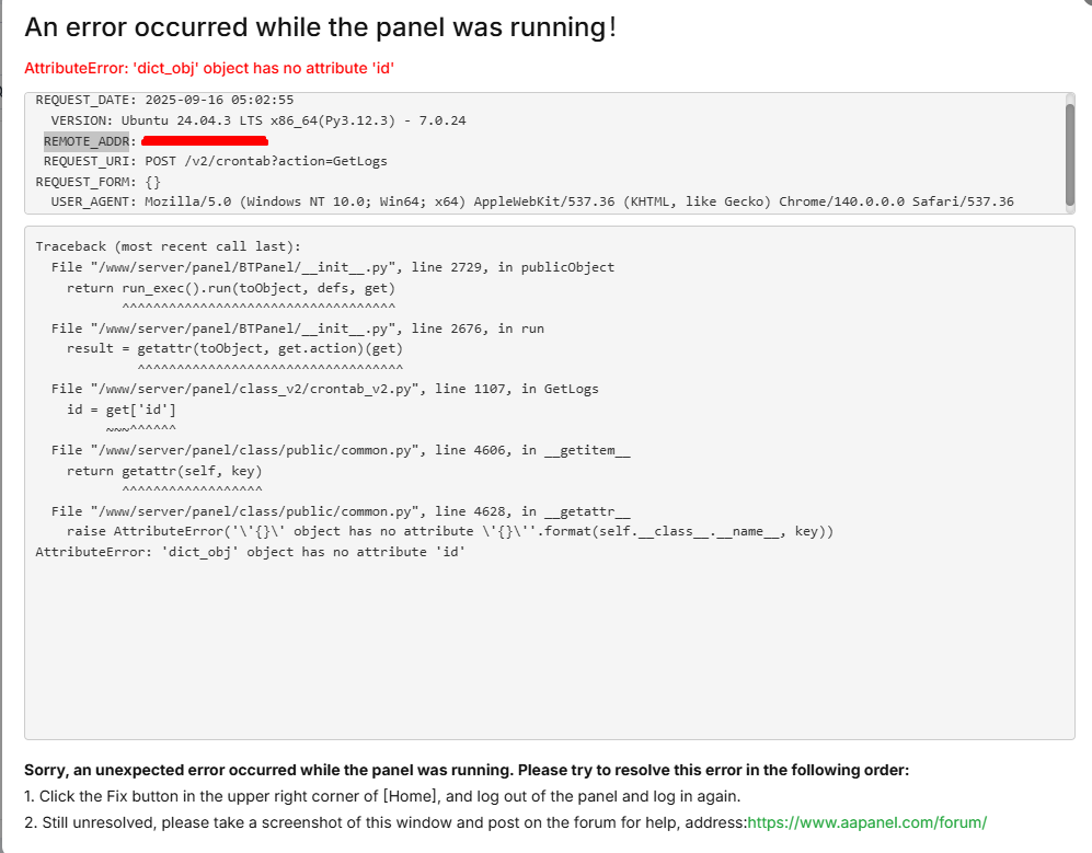 File "/www/server/panel/class_v2/crontab_v2.py", line 1107, in GetLogs