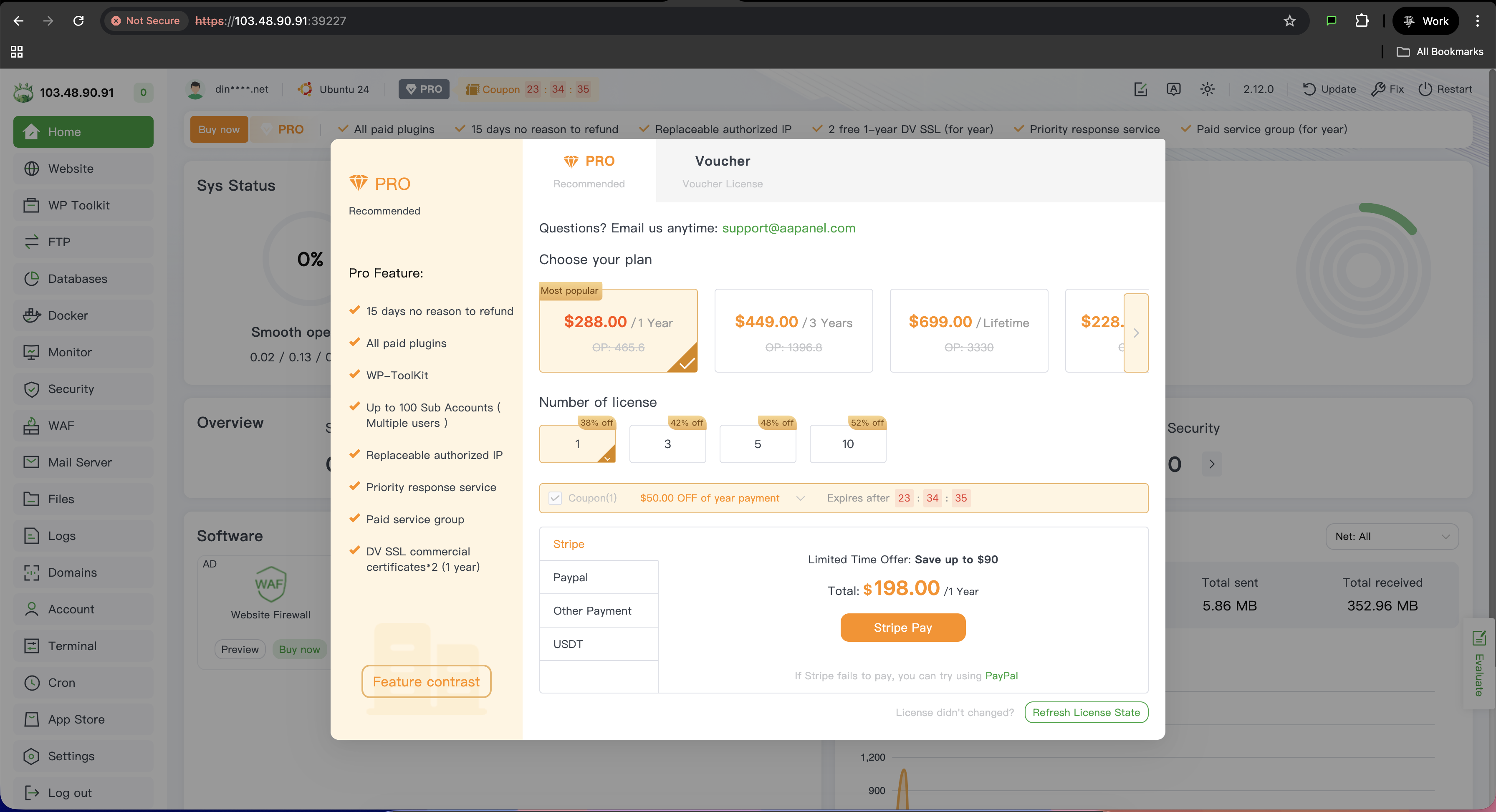 aaPanel_Kern aaP_dinesh The 14-day trial license has been gifted to your aaPanel account Usage documentation: https://www.aapanel.com/docs/Function/Tutorial/deduct_coupons.html