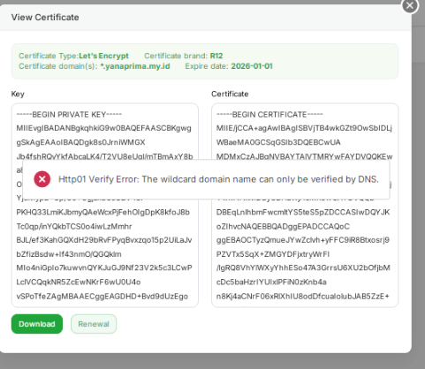 Http01 Verify Error: The wildcard domain name can only be verified by DNS