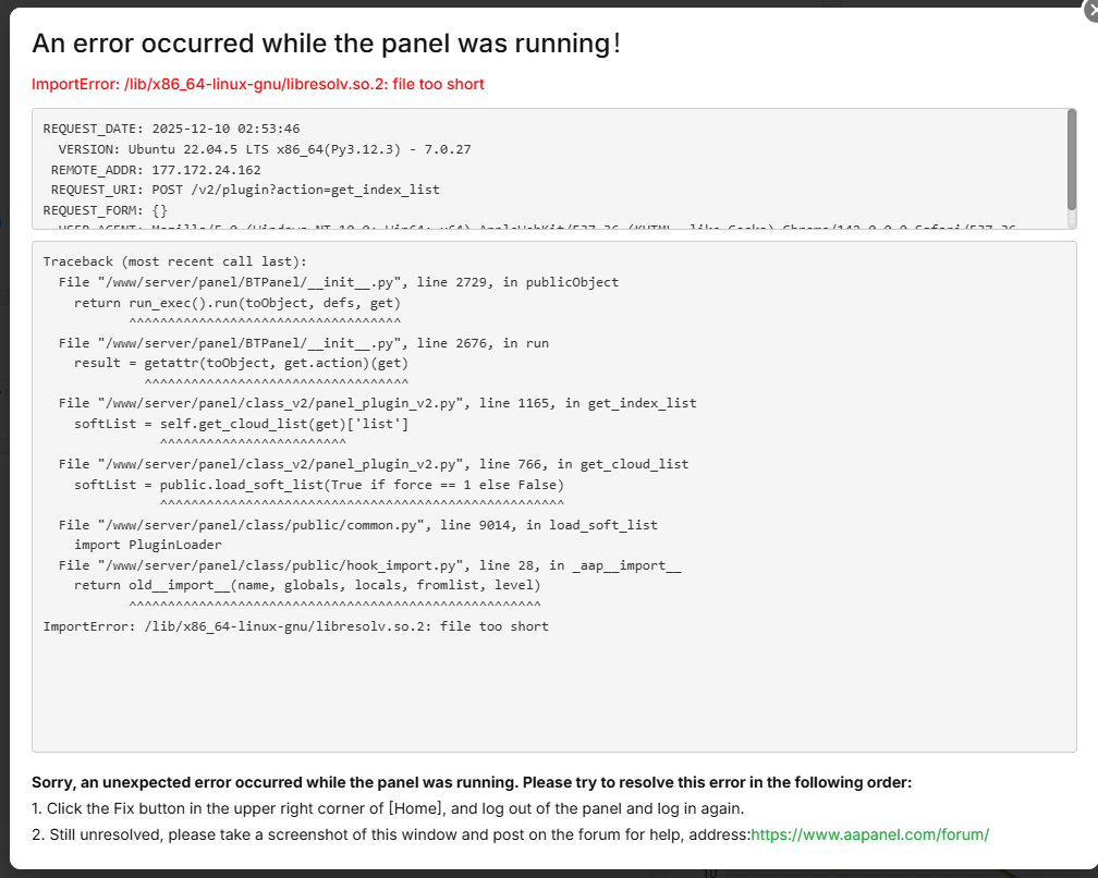 Hi, can you give us your aapanel information? The server makes a snapshot backup first, if possible, please send it to kern@aapanel.com.