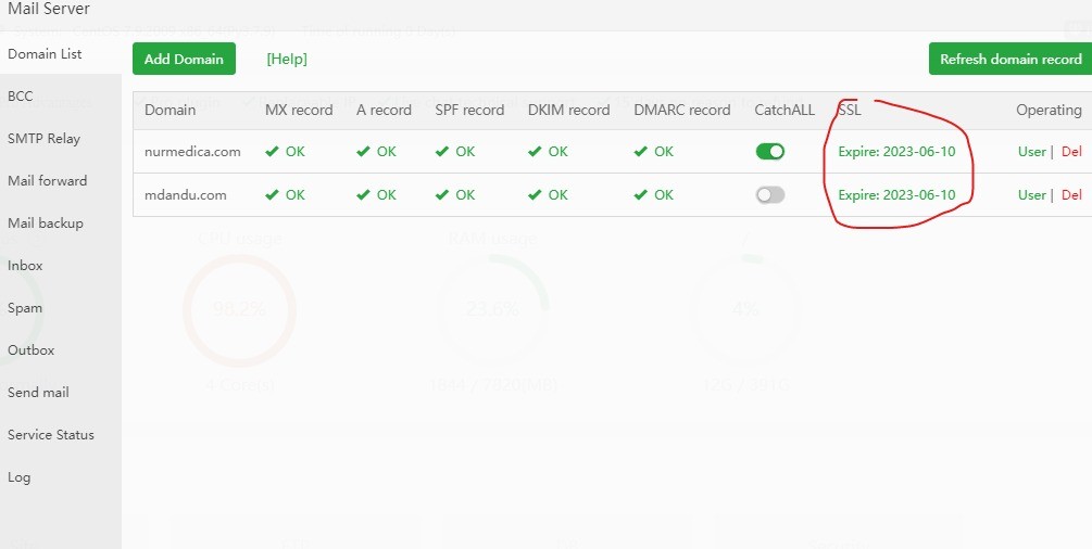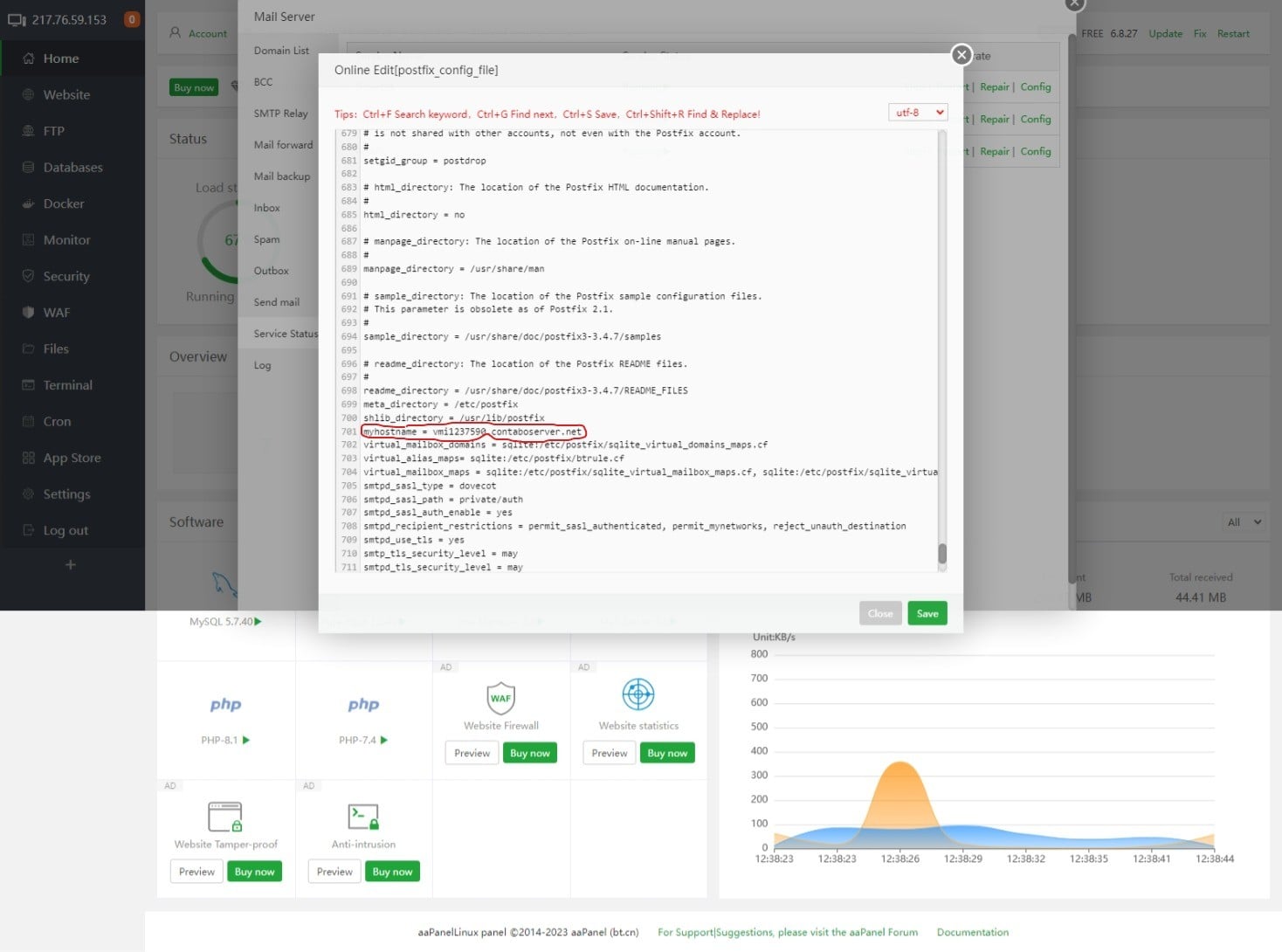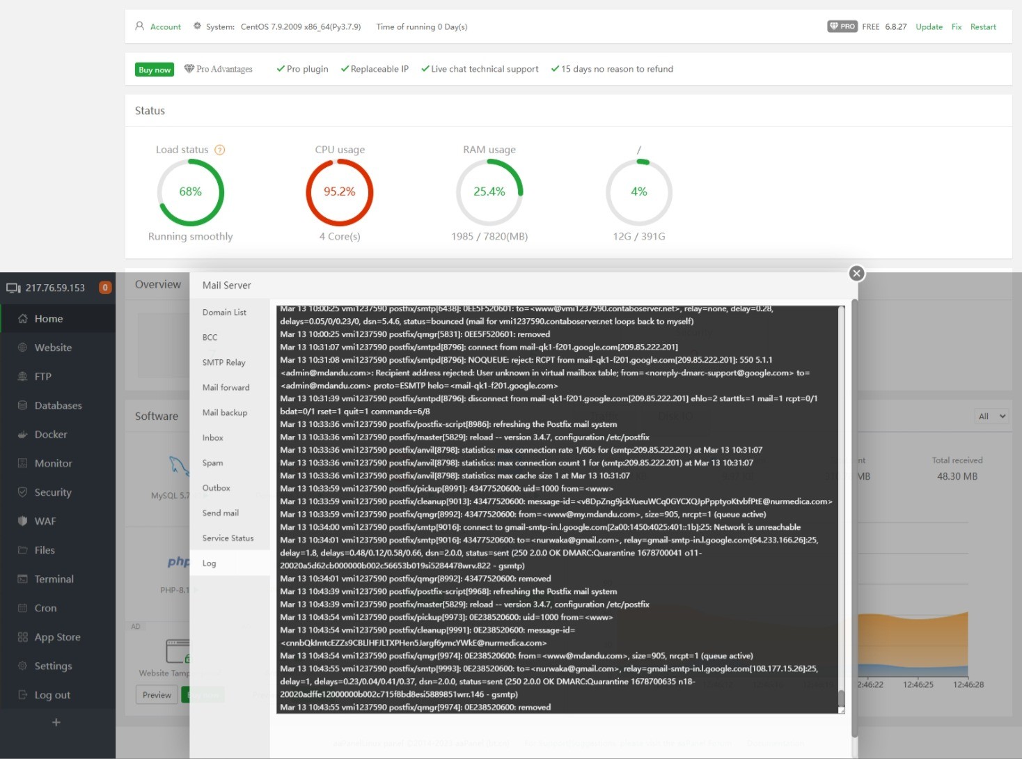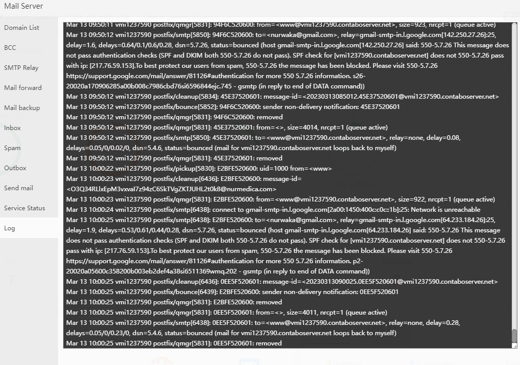 At the same time, check the postfix configuration, which can be viewed in the server status