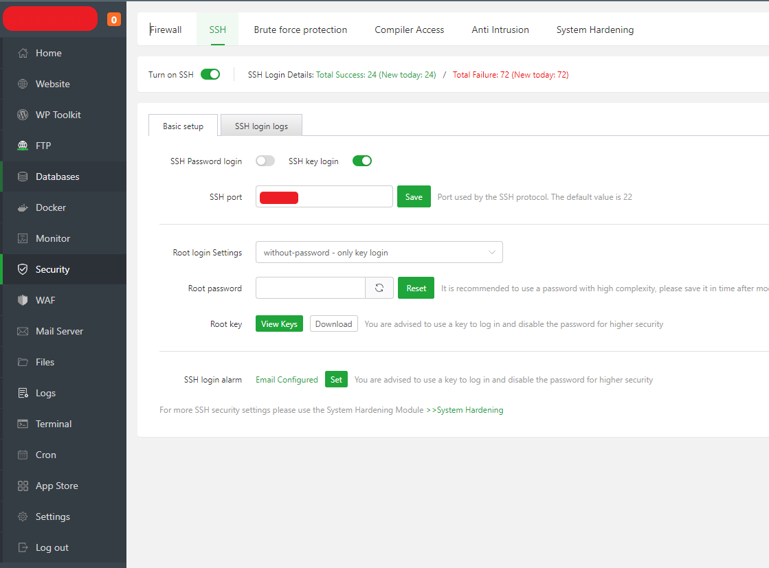 I was not able to log in to the AAPanel's terminal using a password nor SSH private key.