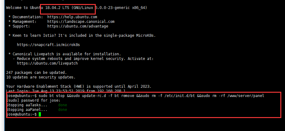 aaPanel_Jose amexone try this command sudo bt stop &&sudo update-rc.d -f bt remove &&sudo rm -f /etc/init.d/bt &&sudo rm -rf /www/server/panel