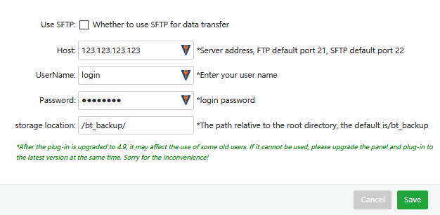 zohebnsr aapanel_user this is not gonna work with 21 Port. As I said the Port is 21 and it cannot be changed for my Cloud Storage. If it was 22, yes it can be done.