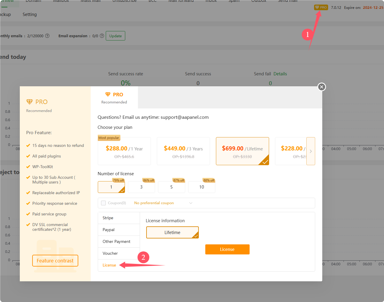 aaP_leonard2s aaPanel_Kern Thank you for your quick response. My screen is smaller and the license option did not appear. I used the browser's zoom option and reduced it to 40%, so the license option appeared and I was able to update my panel. Thank you.
