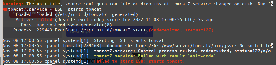 When starting it does not find this daemon.sh path: line 236: /www/server/tomcat7/bin/jsvc in the daemon.sh