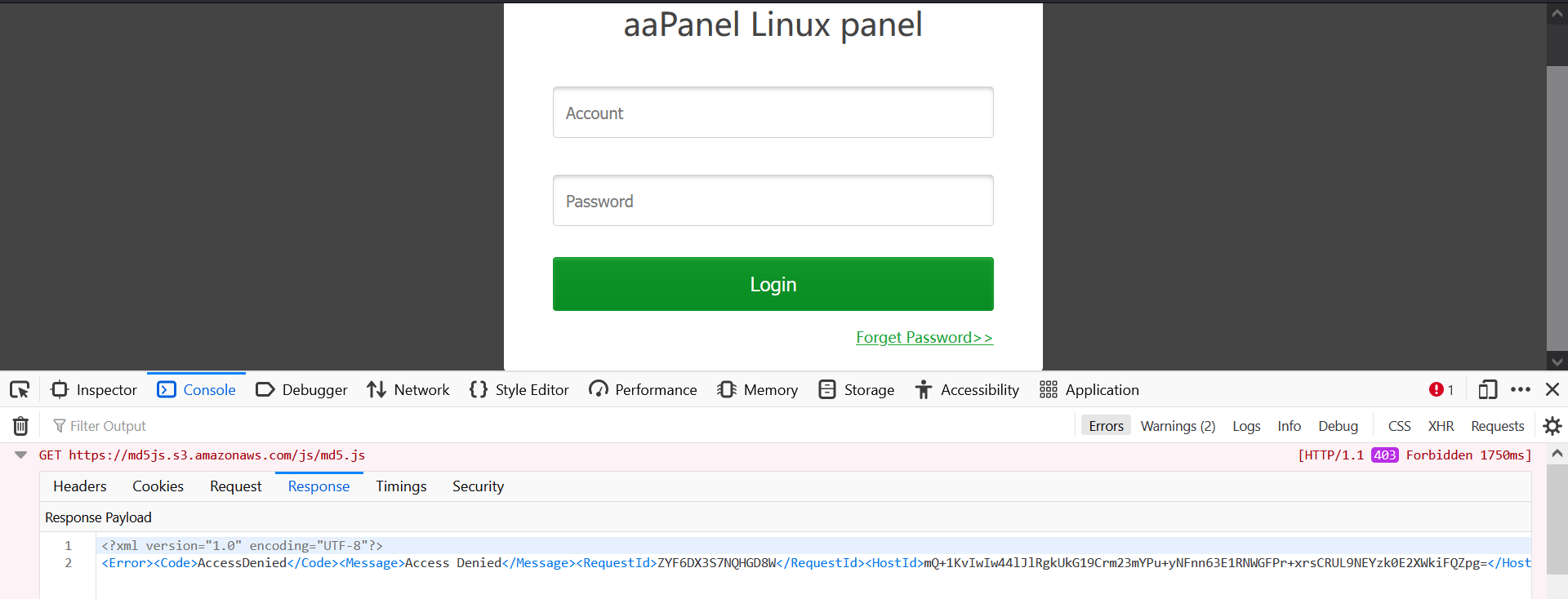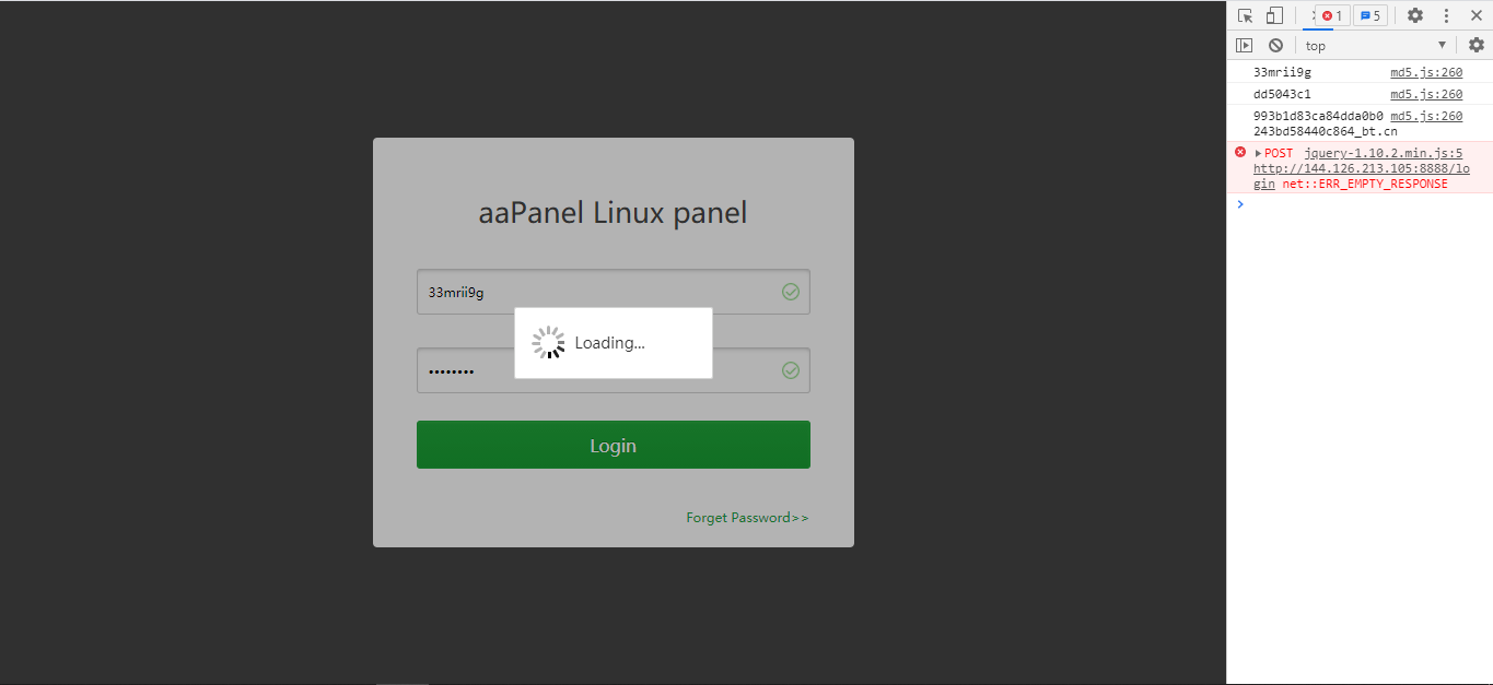 aaPanel_Kern aaP_wixpadevs49 Hello,Try to use the incognito mode of the browser or change the browser access to solve the problem? If the problem cannot be solved, use the SSH tool to log in to the server and execute commands to view logs to check what the problem is. View log: bt 22