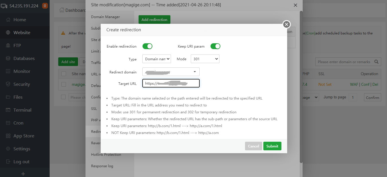 When I install aapanel with apache and ssl my domain is executed: https://mydomain.com