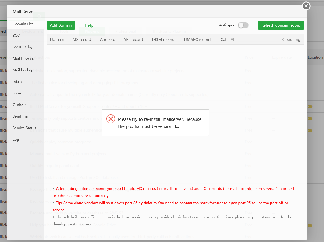 i installed it manually with dnf install postfix, but then it didn't start and said