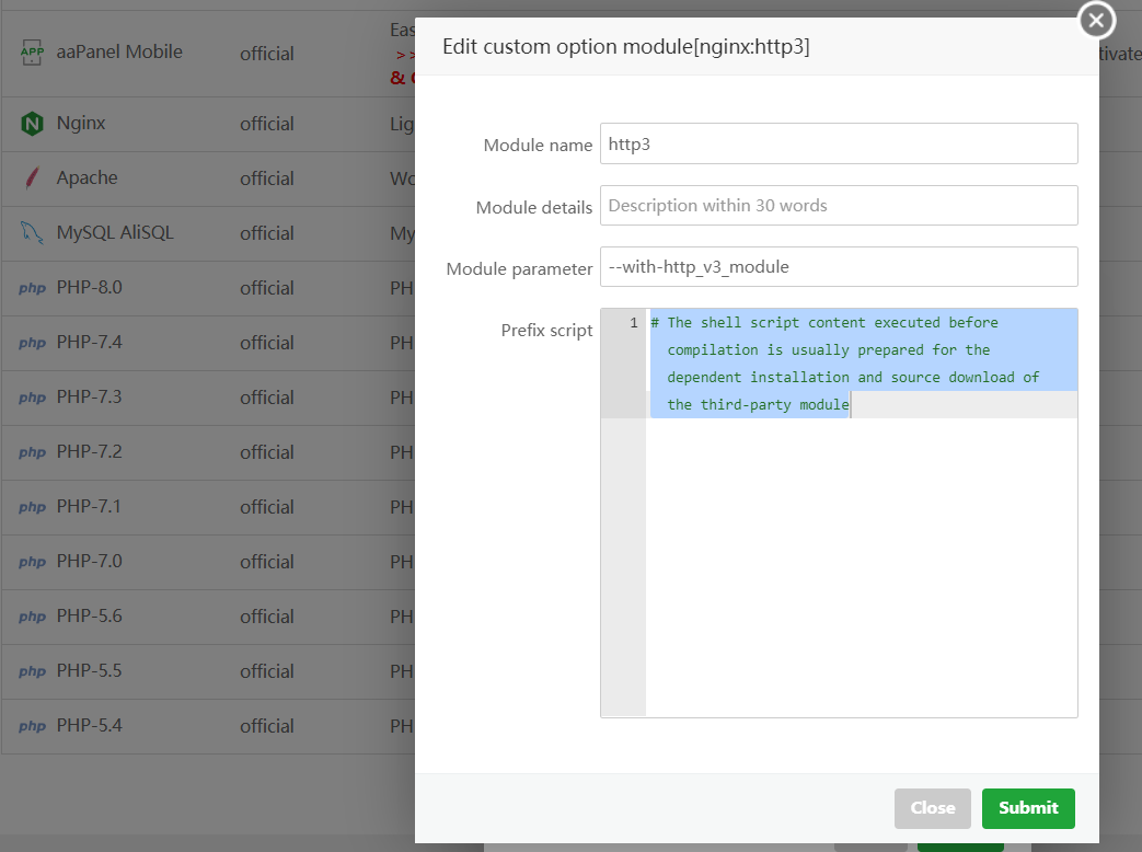 diazzaid Does aapanel support the Nginx Module http / 3? and how to add the module https://quic.nginx.org/README