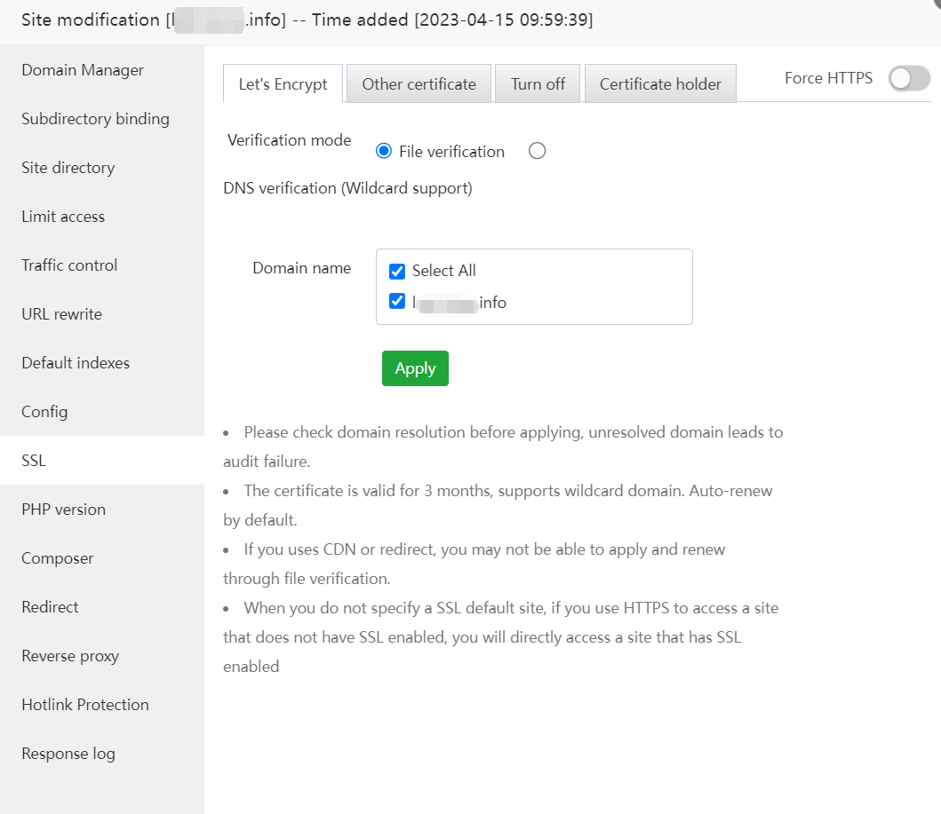 The fullchain.pem file needs to contain multiple certificates including the server cert and root cert, but currently there is only one server cert, which is obviously not a problem with Let's Encrypt, but a problem with aaPanel.