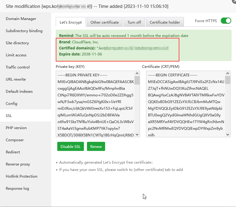 aaP_kotakomputer.ceo aaP_hprj @aaPanel_Kern: I'm facing similiar issue, the SSL on aaPanel (using Nginx) was updated to CloudFlare, but browser say Let's Encrypt. But I have another server that working fine, this server using Apache.