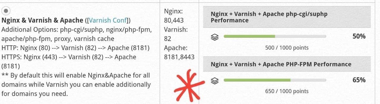 I'd suggest you tell the developers to consider using Central Web Panel's approach of combining Apache + Nginx + Varnish.