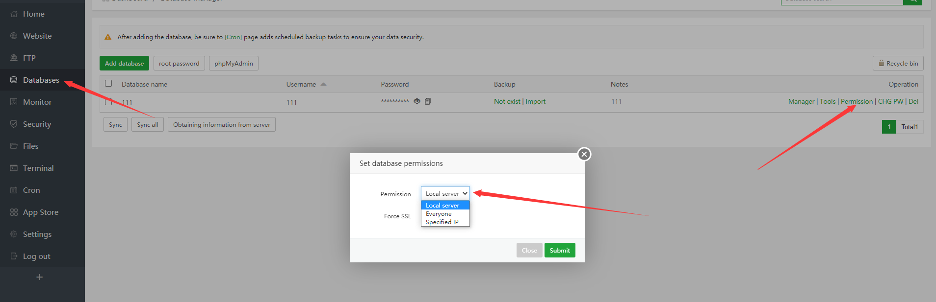What error code does the FTP connection prompt, make sure that port 21 and ports 39000-40000 are accessible. There is also port 3306 to ensure release, and the database permissions of the connection can be accessed by the external network, and the access permissions can be set in the database management