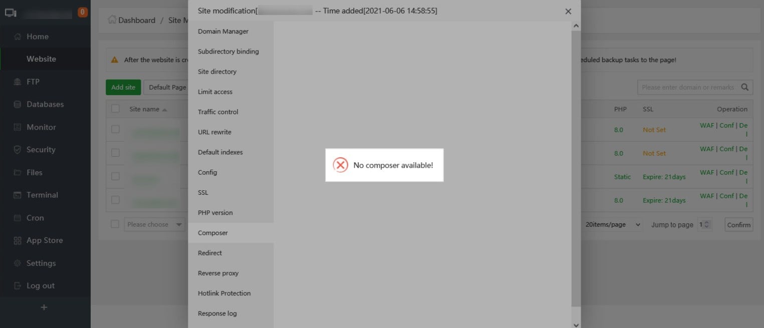 aaPanel_thisyear aapanel_user Hello, the same environment test here is normal. If it's convenient, send the server information to the following mailbox to help you check and see what the reason is. bt_ ahong@qq.com