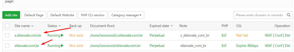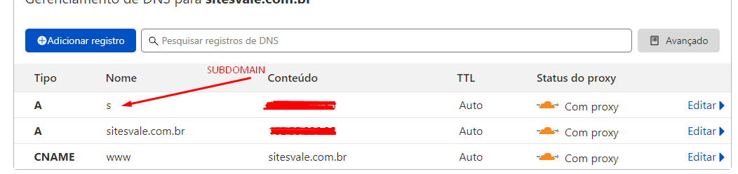 I create annotation A on Cloudflare in the main domain, after doing the ping test and it is ok, I add it as a new domain in the Website tab of the Panel.