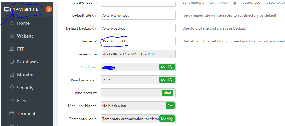 i'm learning from you guys..when i try to change my Server ip to the aapanel INTERNET address ip given, it does not change. i want to be able to access my panel console from another place . ( i have installed aapanel on my virtua