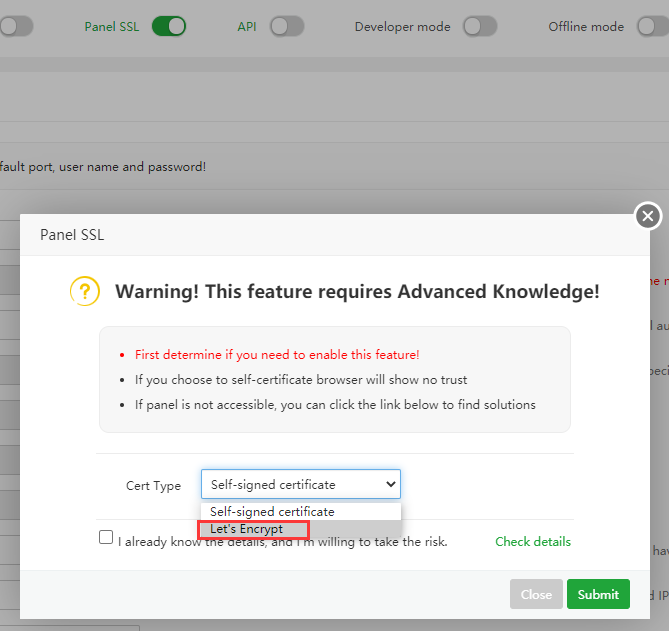5- then go to Aapanel : Setting : Turn on : panel SSL.