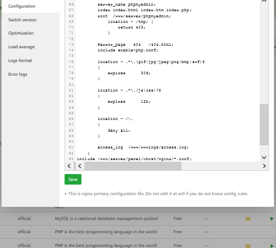 In your nginx.conf ( /www/server/nginx/conf/nginx.conf ) seems to be an error on line 62