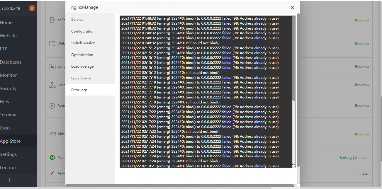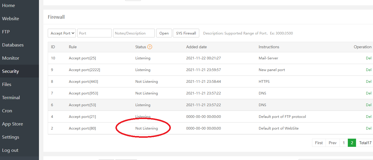 aaPanel_Jose CristianJG It seems that because you set the port of the panel and the port of the webserver to the same, please do not do this
