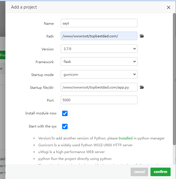 aaP_fehmi_huseynov Please help me . MY Domain name is TOPBESTDAD.COM i select files but can not run flask file. Always stop status and my site can not open